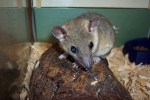 I acquired Paco on September 22, 2008. He was purchased for me by my zoo mentor at an exotic animal auction in Ohio. I knew nothing about short-tailed opossums but was thrilled to learn. He was a small animal measuring 4 inches long including his tail and there was no information about his age. I figured that at least 4-6 months old. The first night he escaped from the wire hamster cage and had crawled under my desk. At 2:00 in the morning I am chasing all the cats out of my room while I try to catch this lightening-fast critter! After that I went with a fish tank with a lid because escape was less likely although it didn’t stop my cats from sitting on the lid looking down upon him. Although small and skitterish, we bonded over mealworms. Yes, I would take tweezers and feed him live mealworms every other night to get him familiar with me. I used tweezers after he missed the worm and bit my finger once. Not his fault as it’s difficult to see past the long snout. For such a small animal he had large testicles. So large that children would notice them dangling as I held him during lectures. Often I would be asked what they were or they noted that Paco had something stuck on him! How do you think I replied to that? I calmly explained that those were his male organs and quickly moved on to other features! He was admired by many children and even adults. He became so calm when being held that I even trusted others to hold him during the touch time portion of my program. I always had the assistant wear gloves because Paco was notorious for pooping and peeing on his holder. He educated at 5 programs last year (2011).